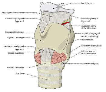 The glottis is the opening between the vocal folds located in the larynx. Its position creates different vibration patterns to distinguish voiced and voiceless sounds.[51] In addition, the pitch of the vowel is changed by altering the frequency of vibration of the vocal folds. In some languages there are contrasts among vowels with different phonation types.[52]
