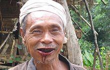 Bersirih, nyirih or menginang is a Malay-Indonesian tradition of chewing materials such as nut, betel, gambier, tobacco, clove and limestone.[19] Menginang tradition or chewing betel nut is widespread among Indonesian ethnic groups, especially among the Javanese, Balinese and Malay people; dating back to more than 3000 years.[20] Records of travelers from China showed that betel and areca had been consumed since the 2nd century BCE.[20]