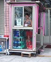 In Taiwan betel quid is sold from roadside kiosks, often by the so-called betelnut beauties (Hokkien "pin-nn̂g se-si", Mandarin "bīnláng xīshī", 檳榔西施)—scantily-clad girls selling a quid preparation of betel leaf, betel nuts, tobacco and lime. It is a controversial business, with critics questioning entrapment, exploitation, health, class and culture.[41]