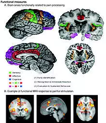 - ^ Brown JE, Chatterjee N, Younger J, Mackey S (September 2011). "Towards a physiology-based measure of pain: patterns of human brain activity distinguish painful from non-painful thermal stimulation". PLOS ONE. 6 (9): e24124. Bibcode:2011PLoSO...624124B. doi:10.1371/journal.pone.0024124. PMC 3172232. PMID 21931652.