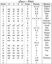 Table showing the Mandaic alphabet (Abagada) with some of the mysteries represented by the letters