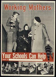 In the U.S., while the Family and Medical Leave Act of 1993 (FMLA) allows for unpaid parental leave, parents often do not utilize this eligibility to its fullest extent as it is unaffordable. As a result, some studies show that the FMLA has had a limited impact on how much leave new parents take.[44] Though specific amounts can vary, having a child (including the cost of high-quality childcare) costs families approximately $11,000 in the first year.[45] These high costs contribute to new mothers in the United States returning to work quicker than new mothers in European countries; approximately one third of women in the United States return to work within three months of giving birth, compared to approximately five per cent in the U.K., Germany, and Sweden,[46] and just over half of mothers in the United States with a child under the age of one work.[47]