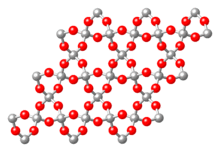 Phyllosilicate, mica group, muscovite (red: Si, blue: O)