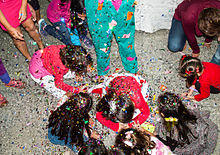In the Philippines, a similar game called hampas-palayok or pukpok-palayok[30] (hit-the-pot) is played during Filipino fiestas and traditional parties (e.g., birthdays), in which a clay pot filled with treats and/or prizes is used. Also đập nêu (pot-hitting) appears in Vietnamese traditional custom.