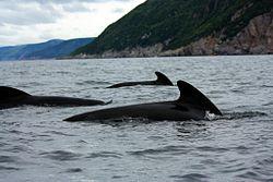 - ^ a b c d e f g h i j k l m n o p q r s t u Olson, P.A. (2008) "Pilot whale Globicephala melas and G. muerorhynchus" pp. 847–52 in Encyclopedia of Marine Mammals, Perrin, W. F., Wursig, B., and Thewissen, J. G. M. (eds.), Academic Press; 2nd edition, ISBN 0-12-551340-2