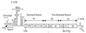 - VPg (3B), a small protein that binds viral RNA and is necessary for synthesis of viral positive and negative strand RNA