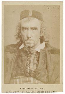 Since Kean's time, many other actors who have played the role have chosen a sympathetic approach to the character. Edwin Booth was a notable exception, playing him as a simple villain, although his father Junius Brutus Booth had portrayed the character sympathetically. Henry Irving's portrayal of an aristocratic, proud Shylock (first seen at the Lyceum in 1879, with Portia played by Ellen Terry) has been called "the summit of his career".[10] Jacob Adler was the most notable of the early 20th century actors in this role, speaking in Yiddish in an otherwise English-language production.[11]