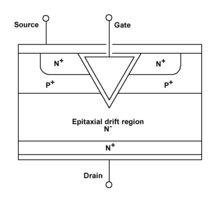 The VMOS structure has a V-groove at the gate region and was used for the first commercial devices.[36]