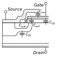 Where CGS, CGD and CDS are respectively the gate-to-source, gate-to-drain and drain-to-source capacitances (see below). Manufacturers prefer to quote Ciss, Coss and Crss because they can be directly measured on the transistor. However, as CGS, CGD and CDS are closer to the physical meaning, they will be used in the remaining of this article.