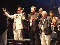 In Pentecostal congregations, prayer is often accompanied by speaking in an unknown tongue, a practice now known as glossolalia.[84] Practitioners of Pentecostal glossolalia may claim that the languages they speak in prayer are real foreign languages, and that the ability to speak those languages spontaneously is a gift of the Holy Spirit.[85][86][87] Some people outside of the movement, however, have offered dissenting views. George Barton Cutten suggested that glossolalia was a sign of mental illness.[88] Felicitas Goodman suggested that tongue speakers were under a form of hypnosis.[89] Others suggest that it is a learned behaviour.[90][91] Some of these views have allegedly been refuted.[92][93]