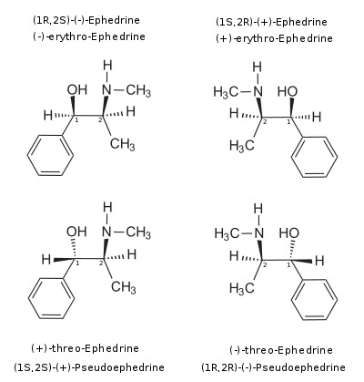 - ^ Drew, CD; Knight, GT; Hughes, DT; Bush, M (1978). "Comparison of the effects of D-(−)-ephedrine and L-(+)-pseudoephedrine on the cardiovascular and respiratory systems in man". British Journal of Clinical Pharmacology. 6 (3): 221–225. doi:10.1111/j.1365-2125.1978.tb04588.x. PMC 1429447. PMID 687500.