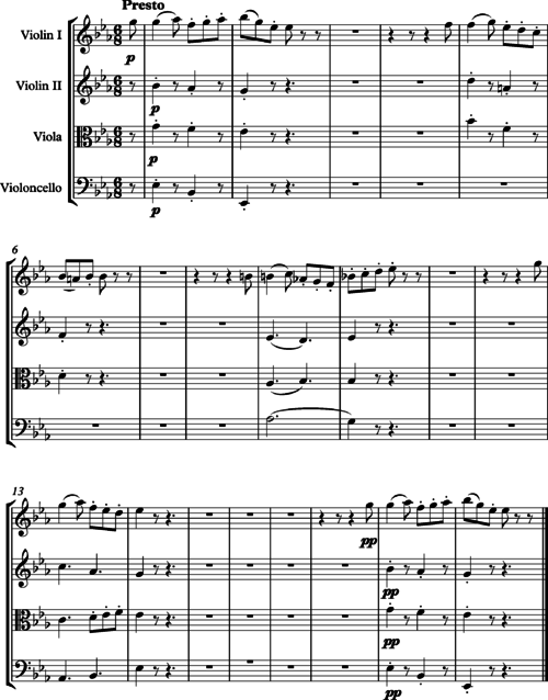 The closing bars of String Quartet in E flat, Op. 33 by Haydn