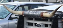 In the European Union, since 1974 all new cars have had to conform to a European directive on vehicle exterior projections.[9] Rolls Royce's mascot is now mounted on a spring-loaded mechanism designed to retract instantly into the radiator shell if struck with a force greater than 98 newtons (22 pounds-force). The Mercedes-Benz and many other ornaments were designed with a spring mount to fold on impact. For aftermarket ornaments, breakaway nylon fixings are available that comply with EC Directive 74/483.[10]