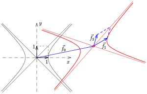 is the center, a point of the hyperbola and a tangent vector at this point.