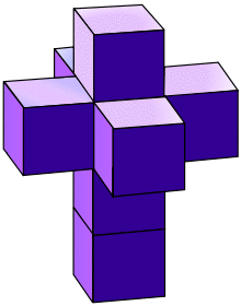 The second approach is to embed the higher-dimensional objects in three-dimensional space, using methods analogous to the ways in which three-dimensional objects are drawn on the plane. For example, the fold out nets mentioned in the previous section have higher-dimensional equivalents.[6] One might even imagine building a model of this fold-out net, as one draws a polyhedron's fold-out net on a piece of paper. Sadly, we could never do the necessary folding of the 3-dimensional structure to obtain the 4-dimensional polytope because of the constraints of the physical universe. Another way to "draw" the higher-dimensional shapes in 3 dimensions is via some kind of projection, for example, the analogue of either orthographic or perspective projection. Coxeter's famous book on polytopes (Coxeter 1948) has some examples of such orthographic projections.[7] Note that immersing even 4-dimensional polychora directly into two dimensions is quite confusing. Easier to understand are 3-d models of the projections. Such models are occasionally found in science museums or mathematics departments of universities (such as that of the Université Libre de Bruxelles).