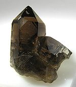 Efforts to synthesize quartz began in the mid nineteenth century as scientists attempted to create minerals under laboratory conditions that mimicked the conditions in which the minerals formed in nature: German geologist Karl Emil von Schafhäutl (1803–1890)[39] was the first person to synthesize quartz when in 1845 he created microscopic quartz crystals in a pressure cooker.[40] However, the quality and size of the crystals that were produced by these early efforts were poor.[41] By the 1930s, the electronics industry had become dependent on quartz crystals. The only source of suitable crystals was Brazil; however, World War II disrupted the supplies from Brazil, so nations attempted to synthesize quartz on a commercial scale. German mineralogist Richard Nacken (1884–1971) achieved some success during the 1930s and 1940s.[42] After the war, many laboratories attempted to grow large quartz crystals. In the United States, the U.S. Army Signal Corps contracted with Bell Laboratories and with the Brush Development Company of Cleveland, Ohio to synthesize crystals following Nacken's lead.[43][44] (Prior to World War II, Brush Development produced piezoelectric crystals for record players.) By 1948, Brush Development had grown crystals that were 1.5 inches (3.8 cm) in diameter, the largest to date.[45][46] By the 1950s, hydrothermal synthesis techniques were producing synthetic quartz crystals on an industrial scale, and today virtually all the quartz crystal used in the modern electronics industry is synthetic.