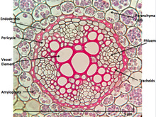 Perhaps the most striking characteristic of roots that distinguishes them from other plant organs such as stem-branches and leaves is that roots have an endogenous[5] origin, i.e., they originate and develop from an inner layer of the mother axis, such as pericycle.[6] In contrast, stem-branches and leaves are exogenous, i.e., they start to develop from the cortex, an outer layer.
