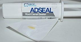 Root canal sealer used to fill the spaces between the gutta-percha and the walls of root canal and between the gutta-percha cones