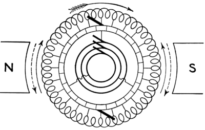 - if the coil is rotated, direct current can be taken from the commutator, and it is called a dynamo.