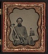 The saxhorn was the most common brass instrument in American Civil War bands. The over-the-shoulder variety of the instrument was used, as the backward-pointing bell of the instrument allowed troops marching behind the band to hear the music.