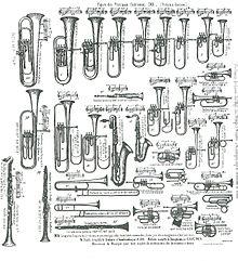 The saxhorns form a family of seven brass instruments (although at one point ten different sizes seem to have existed). Designed for band use, they are pitched alternately in E♭ and B♭, like the saxophone group.