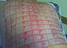 - Skin scratch test: a deep dermic scratch is performed with help of the blunt bottom of a lancet.[3]