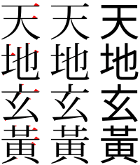- The analogs of serifs are called 鱗, literally "fish scales".