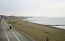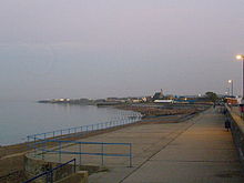 Sheerness's sand and shingle beach was awarded a European Blue Flag for cleanliness and safety. Flower gardens decorate the seafront, and a sea wall forms a promenade along the coast. The Sheppey Leisure Complex located near the beach contains a swimming pool and badminton, squash and tennis courts.[49] Other sports clubs include Sheerness Town Bowls Club, Sheerness East Cricket Club, the Isle of Sheppey Sailing Club, Beachfields Skatepark, Sheerness East Table Tennis Club, Catamaran Yacht Club, and Sheerness Swimming Club and Lifeguard Corps.[50] Sheerness Golf Club was founded in 1906, and has an 18-hole course just to the south-east of town.[51] Sheerness East Football Club, established in 1932, play in the Kent County League Premier Division. Sports can be played for free at the town's recreation grounds at Beachfields Park, Festival Playing Field, and Seager Road Sports Ground.[52] The annual arts and heritage Sheerness Promenade Festival opened in September 2011 with appearances by Michael Palin and Dan Cruickshank. It takes place in late July at the Sheppey Little Theatre, the Heritage Centre in Blue Town and various other venues in Sheerness.[53]