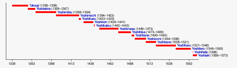 9 | Ashikaga Yoshihisa | 1465–1489 | 1473–1489 |
