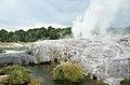 Siliceous sinter is a deposit of opaline or amorphous silica which appears as incrustations near hot springs and geysers. It sometimes forms conical mounds, called geyser cones, but can also form as a terrace. The main agents responsible for the deposition of siliceous sinter are algae and other vegetation in the water. Altering of wall rocks can also form sinters near fumaroles and in the deeper channels of hot springs. Examples of siliceous sinter are geyserite and fiorite. They can be found in many places, including Iceland, El Tatio geothermal field in Chile, New Zealand, and Yellowstone National Park and Steamboat Springs in the United States.