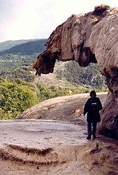 Calcareous sinter is also called tufa, calcareous tufa, or calc-tufa. It is a deposit of calcium carbonate, as with travertine. Called petrifying springs, they are quite common in limestone districts. Their calcareous waters deposit a sintery incrustation on surrounding objects. The precipitation is assisted with mosses and other vegetable structures, thus leaving cavities in the calcareous sinter after they have decayed.[27]
