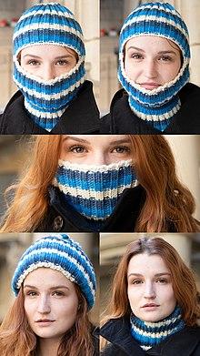 A balaclava, also known as a balaclava helmet or Bally (UK slang) or ski mask (US slang), is a form of cloth headgear designed to expose only part of the face, usually the eyes and mouth. Depending on style and how it is worn, only the eyes, mouth and nose, or just the front of the face are unprotected. Versions with a full face opening may be rolled into a hat to cover the crown of the head or folded down as a collar around the neck.