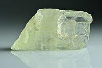 The naturally occurring low-temperature form α-spodumene is in the monoclinic system whereas the high-temperature β-spodumene crystallizes in the tetragonal system. α-spodumene converts to β-spodumene at temperatures above 900 °C.[4] Crystals are typically heavily striated parallel to the principal axis. Crystal faces are often etched and pitted with triangular markings.