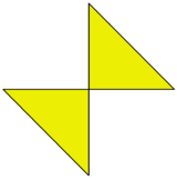 A crossed square is a faceting of the square, a self-intersecting polygon created by removing two opposite edges of a square and reconnecting by its two diagonals. It has half the symmetry of the square, Dih2, order 4. It has the same vertex arrangement as the square, and is vertex-transitive. It appears as two 45-45-90 triangle with a common vertex, but the geometric intersection is not considered a vertex.