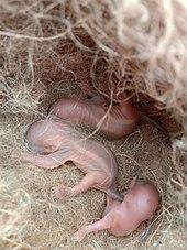 Squirrels mate either once or twice a year and, following a gestation period of three to six weeks, give birth to a number of offspring that varies by species. The young are altricial, being born naked, toothless, and blind. In most species of squirrel, the female alone looks after the young, which are weaned at six to ten weeks and become sexually mature by the end of their first year. In general, the ground-dwelling squirrel species are social, often living in well-developed colonies, while the tree-dwelling species are more solitary.[13]