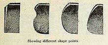 - Spanish point. The profile of the Spanish point has a small, rounded tip at the head, followed by a long concave arch, ending in a small rounded edge at the toe. This point should be used with care when shaving or stropping, as it tends to "bite" due to its pronounced edges.