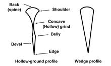 - Hollow grind, indicating that the sides of the blade cross section are concave.[5][42]