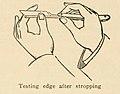 The various straight razor honing and stropping directions and handling techniques are illustrated by the drawings below.