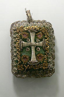 A talisman (Arabic طلسم (ṭilsam), < Greek τέλεσμα telesm n.) is any object ascribed with religious or magical powers intended to protect, heal, or even harm individuals for whom they are made. Talismans are often portable objects carried on someone in a variety of ways, but can also be installed permanently in architecture. Talismans are closely linked with amulets, fulfilling many of the same roles, but a key difference is in their form and materiality, with talismans often taking the form of objects like clothing, weaponry, or parchment inscribed with magic texts.[1]