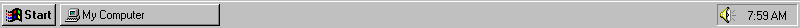 The Start button did not make an appearance in these early implementations of the taskbar, and would be introduced at a much later date with the release of Windows 95.