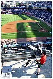 When used outside a formal television studio in outside broadcasting (OB), they are often on tripods that may or may not have wheels (depending on the model of the tripod). Initial models used analog technology, but are now obsolete, supplanted by digital models.