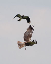 Food related territoriality is least likely with insectivorous birds, where the food supply is plentiful but unpredictably distributed. Swifts rarely defend an area larger than the nest. Conversely, other insectivorous birds that occupy more constrained territories, such as the ground-nesting blacksmith lapwing may be very territorial, especially in the breeding season during which they not only threaten or attack many kinds of intruders, but have stereotyped display behaviour to deter conspecifics sharing neighbouring nesting spots.