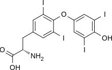 - ^ Dietrich JW, Brisseau K, Boehm BO (August 2008). "[Absorption, transport and bio-availability of iodothyronines]". Deutsche Medizinische Wochenschrift. 133 (31–32): 1644–1648. doi:10.1055/s-0028-1082780. PMID 18651367.