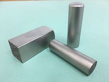 The metal is a dimorphic allotrope of an hexagonal α form that changes into a body-centered cubic (lattice) β form at 882 °C (1,620 °F).[17] The specific heat of the α form increases dramatically as it is heated to this transition temperature but then falls and remains fairly constant for the β form regardless of temperature.[17]
