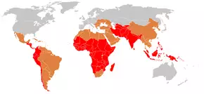 In industrialized nations, water sanitation and food handling improvements have reduced the number of cases.[47] Developing nations, such as those found in parts of Asia and Africa, have the highest rates of typhoid fever. These areas have a lack of access to clean water, proper sanitation systems, and proper health care facilities. For these areas, such access to basic public health needs is not in the near future.[48]