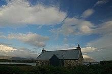 Privately owned since the mid 1950s when it was purchased by the family who then owned the island, it is still used, partly as a community centre, and the north-west wing for worship at least twice a year, at Easter and at Harvest time.[63] (The island was sold to the residents in 1998 however, and the building is now owned by that small group.) It is claimed that in 1847 (Statistical Account), everyone on the island attended services in it including one Roman Catholic and one atheist. Dr Johnson was probably speaking of the old church at Cille Mhic Eòghainn when he said: "Ulva was not neglected by the piety of ardent times: it has still to show what was once a church." Ulva Church is dedicated to St Eòghann of Ardstraw, possibly the same person.