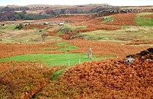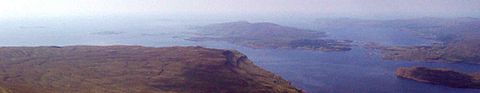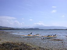 There are a number of smaller islets and rocks off Ulva. To the south and the east are Eilean na Creiche (listed as "Eilean na Craoibhe", on the island's guide's map.)[10] between Little Colonsay and Ulva. Off Port a' Bhàta are Geasgill Beag & Geasgill Mòr, between Ulva and Inchkenneth. To the south west is Sgeir na Sgeireadh, and Màisgeir due south of Gometra. These islands, along with Ulva itself, form part of the Loch na Keal National Scenic Area,[11] one of the forty national scenic areas in Scotland, which are defined so as to identify areas of exceptional scenery and to ensure its protection from inappropriate development.[12]