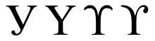 | Unicode | 933 | U+03A5 | 965 | U+03C5 | 978 | U+03D2 |