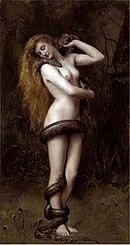 The Persians were one of the first civilizations to have tales of blood-drinking demons: creatures attempting to drink blood from men were depicted on excavated pottery shards.[59] Ancient Babylonia and Assyria had tales of the mythical Lilitu,[60] synonymous with and giving rise to Lilith (Hebrew לילית) and her daughters the Lilu from Hebrew demonology. Lilitu was considered a demon and was often depicted as subsisting on the blood of babies,[60] and estries, female shapeshifting, blood-drinking demons, were said to roam the night among the population, seeking victims. According to Sefer Hasidim, estries were creatures created in the twilight hours before God rested. An injured estrie could be healed by eating bread and salt given to her by her attacker.[61]