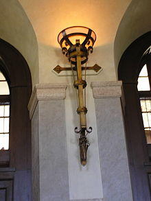 They can provide general room lighting, and are common in hallways and corridors, but they may be mostly decorative.[1] A sconce may be a traditional torch, candle or gaslight, or a modern electric light source affixed in the same way.